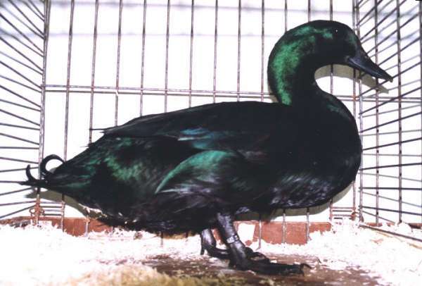 C'est un canard de taille moyenne, docile aux plumage entiérement noir a reflet verdatres